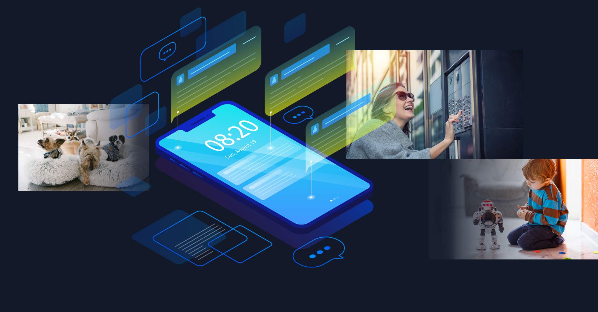應用程式訊息推播通知服務適用於智慧門鈴。當訪客按鈴時,此服務可即時將聲音及影像發送到用戶的行動裝置。